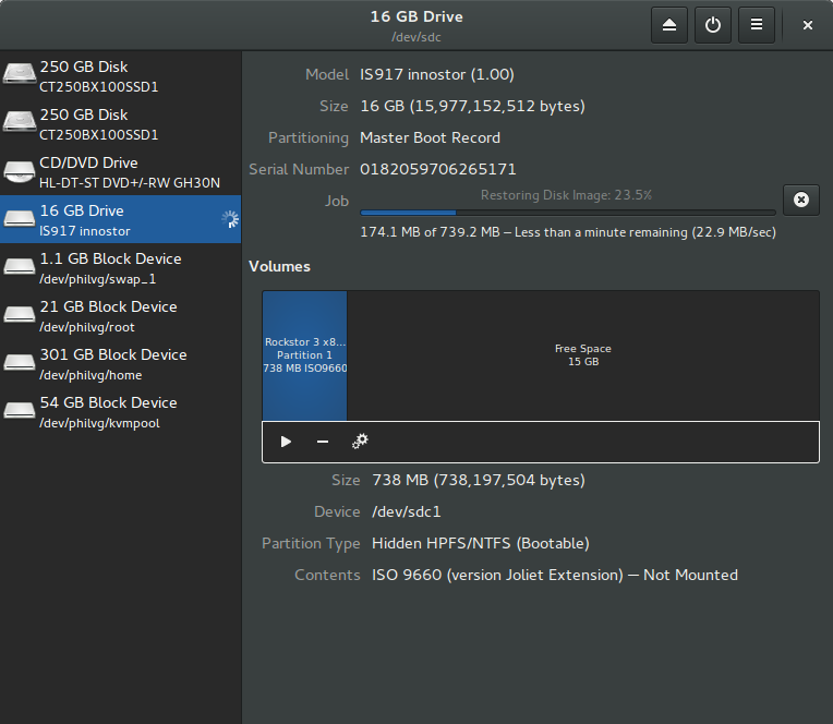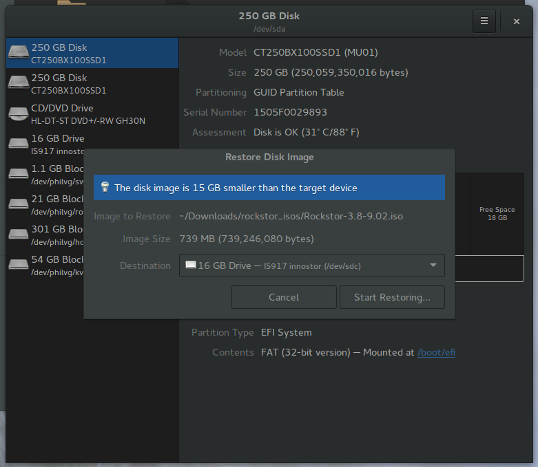 Rockstor USB install disk using Gnome Disks¶